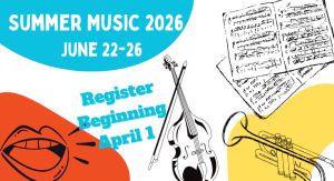 SUMMER FUN! Join us for a week of music camp open to 4th-9th grade. Check out the classes beginning April 1 and register.